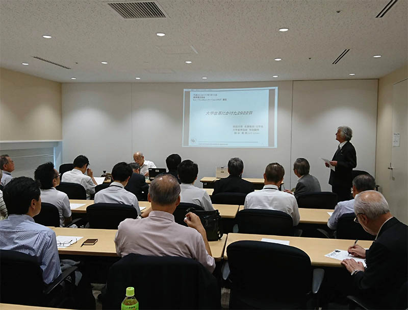 松本勝馬会員の紹介で、2010年に明治大学を受験者数日本一の大学へ躍進させた明治大学元総長・学長の納谷廣美先生から「大学改革にかけた2922日」と題して大学改革への挑戦・大学をめぐる社会状況・これからの社会・というような論点で、お話戴きました。